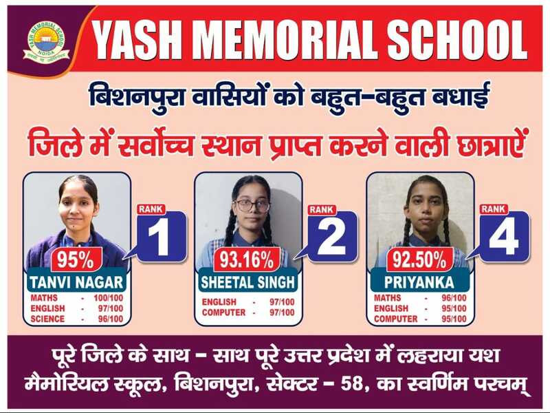 1st Rank In Gautam Buddh Nagar District & 8th Rank in Uttar Pradesh